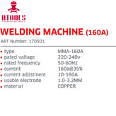 دستگاه جوش ۱۶۰ آمپر وایزآپ مدل ۱۷۰۵۰۱ wiseup welding machine model مشخصات کلی: