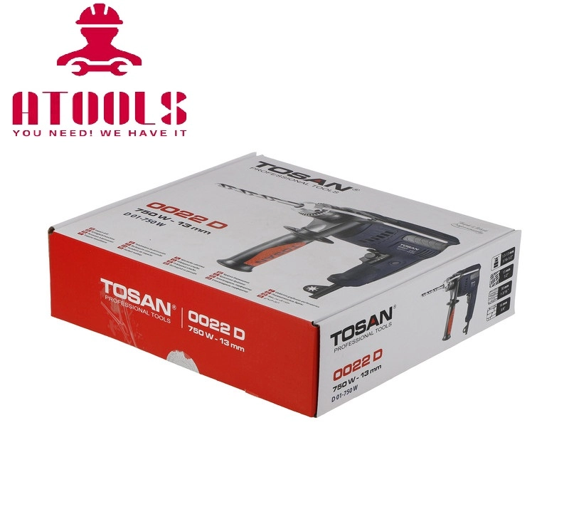 دریل چکشی 13 میلیمتری توسن 0022D یک دریل چکشی با توان 750 وات واقعی که دارای سه نظام 13 میلی متری آچار خور است و دارای سیستم ضربه زن چکشی است. این محصول دارای قطعات باکیفیتی است که باعث افزایش طول عمر دریل توسن می شود. این ابزار قابلیت راست گرد و چپ گرد مجزا از کلید برق دارد که می توان از آن برای باز و بسته کردن پیچ ها نیز استفاده نمود.